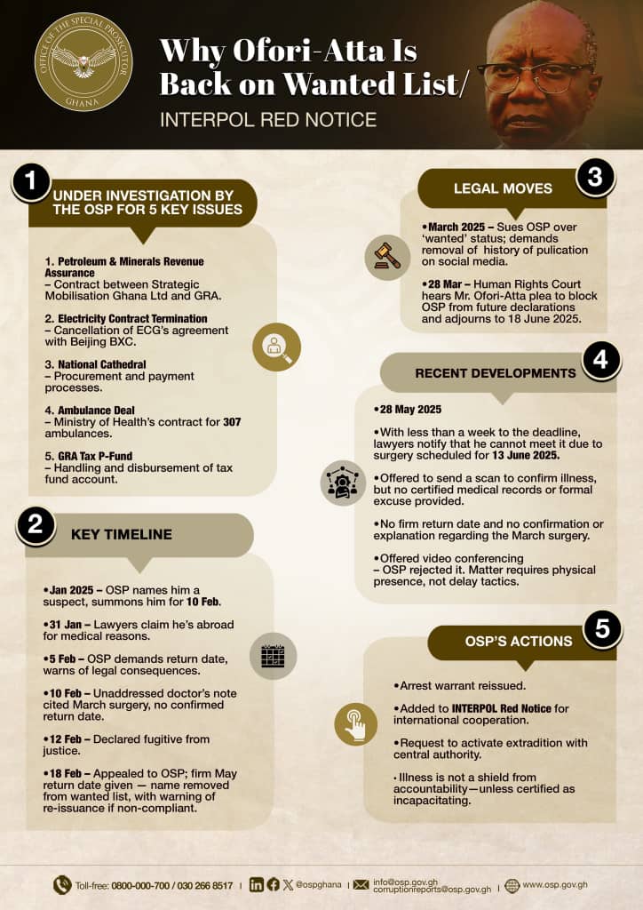 Here is a breakdown of why the Office of the Special Prosecutor is placing former Finance Minister Ken Ofori Atta on the Wanted List again;