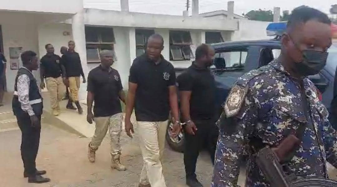 The suspects were arrested by the Gomoa Ojobi District Police Command after reports that they had stormed the area and pulled down several buildings that were under construction. Prosecutors say the group allegedly posed as National Security officers and used force to evict lawful landowners and developers from their parcels of land.