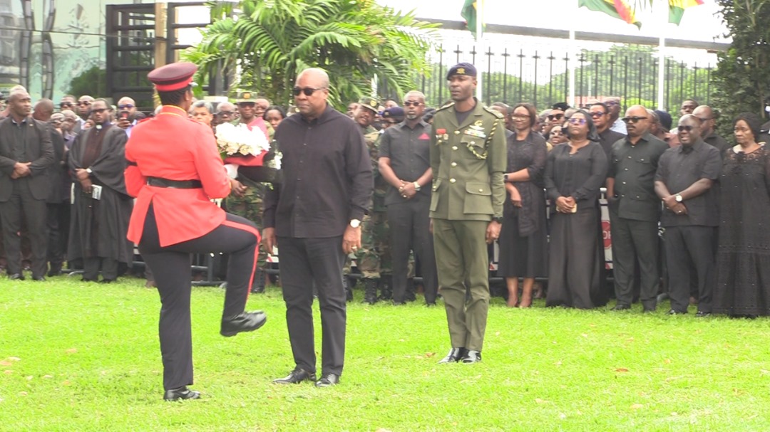 An emotional wreath-laying ceremony was held today, Thursday, August 7, at the Jubilee House, the seat of government, to honour the eight victims of the recent military helicopter crash that has plunged the nation into mourning.