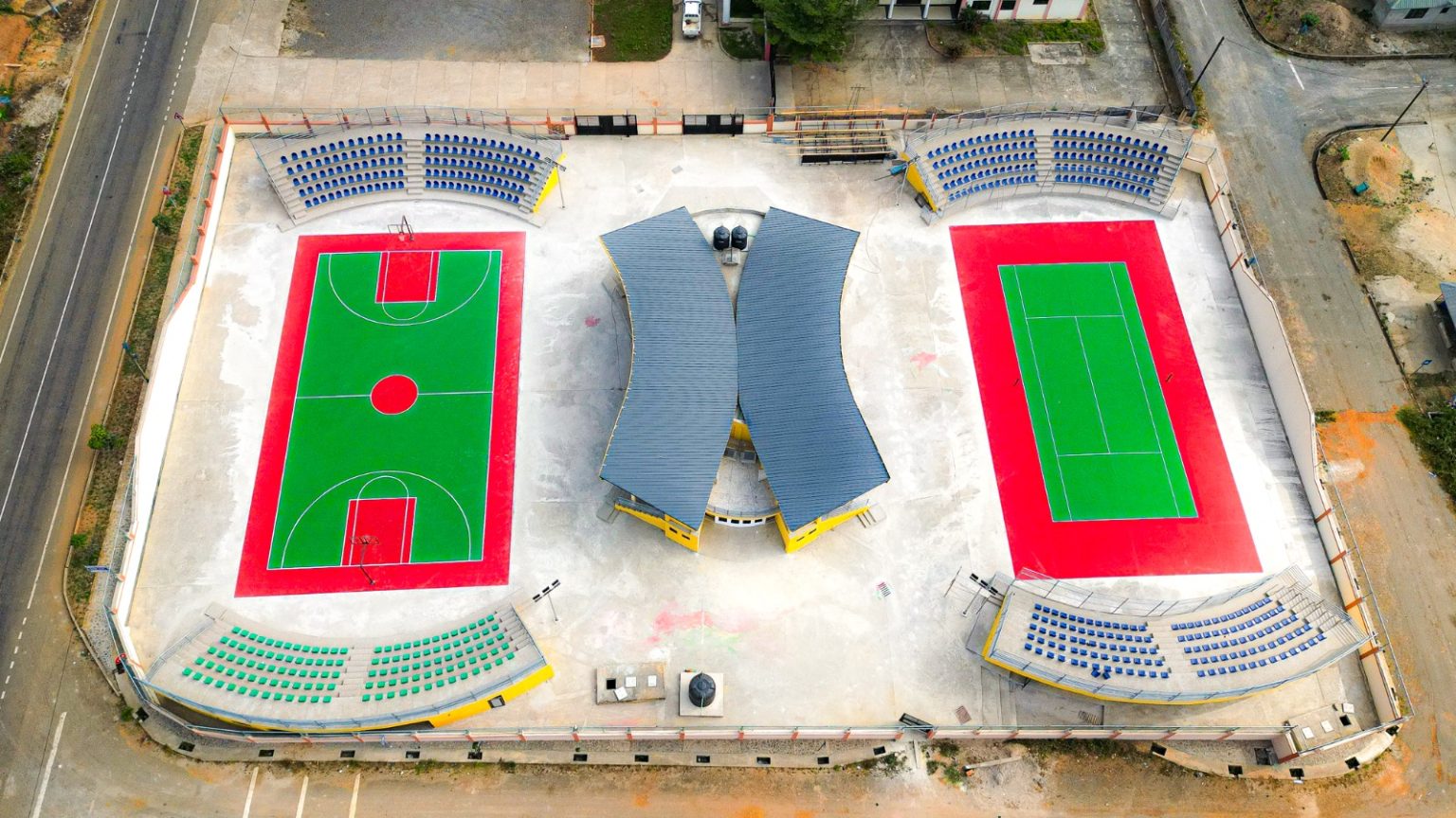 The 812-seater state-of-the-art facility includes a basketball and lawn tennis court with four popular stands, two VIP stands, washrooms and a gym.