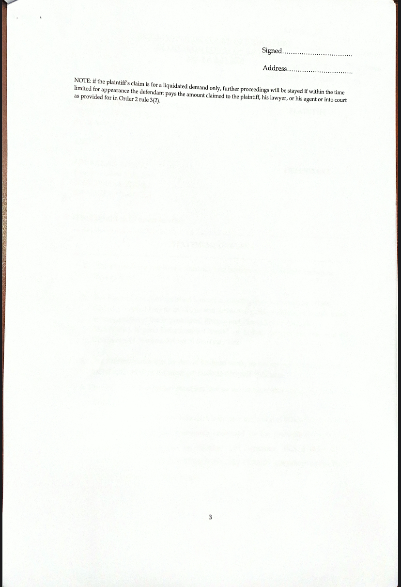 The case has been filed at the High Court, Accra, and the defendant has been directed to enter an appearance within the stipulated time under the rules of court.