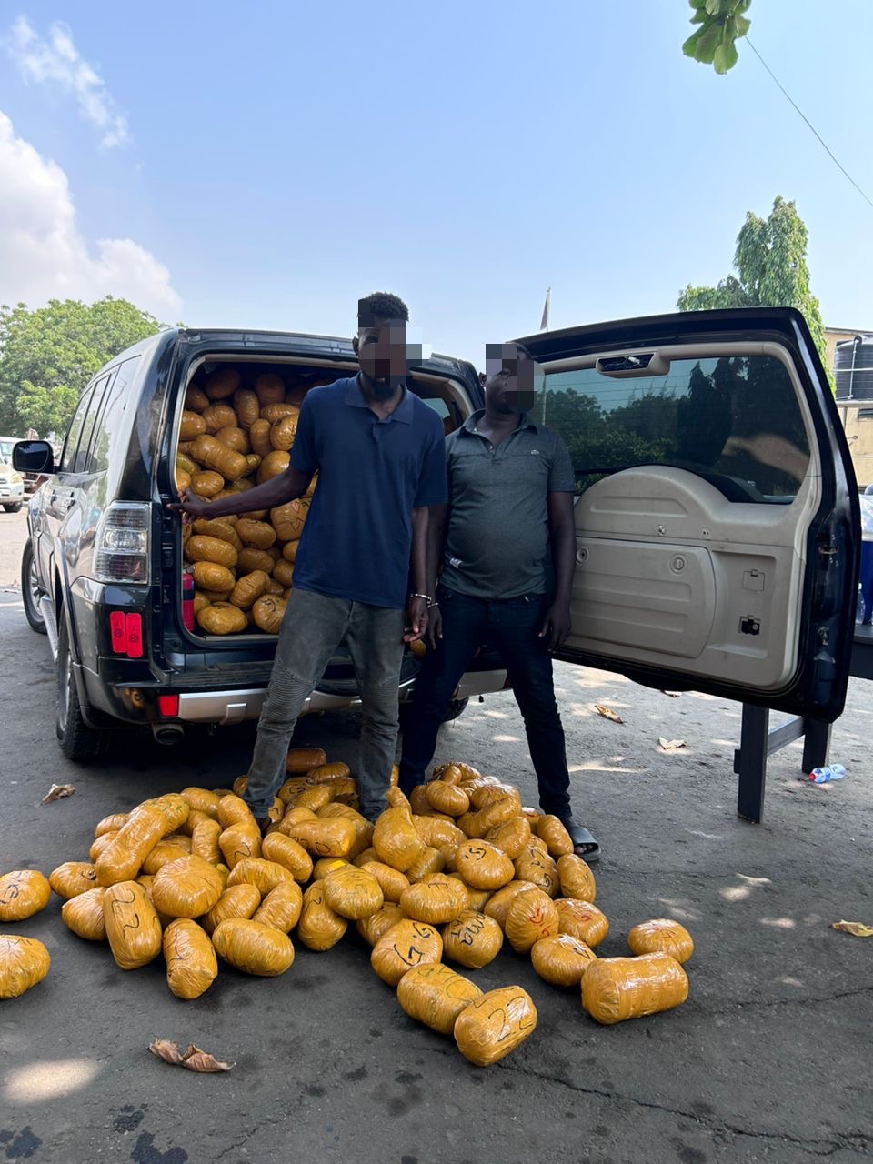 The vehicles were being driven by two suspects identified as Iane Odel, aged 33, and Kwame Mani, aged 39. A search conducted on the vehicles led to the discovery of several compressed, yellow-wrapped parcels suspected to contain narcotic drugs.